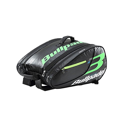 PALETERO BULLPADEL BPP-18005 NEGRO VERDE El paletero Bullpadel BPP-18005 es un complemento moderno y original, creado en color negro y verde, con una estética elegante y juvenil. Creado en un tamaño grande con una amplia capacidad para llevar todo lo necesario y más. Incorpora refuerzos en la zona de las costuras. Este paletero está dividido en: 1 bolsillo central de gran tamaño 2 bolsillos laterales para las palas 1 bolsillo de menor tamaño para objetos personales 2 correas ajustables con refuerzo para llevarlo a la espalda 1 asa de mano